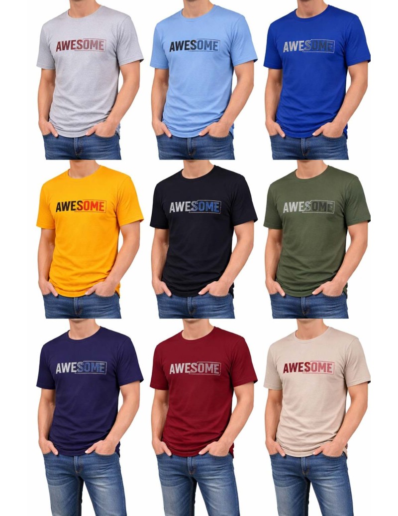 Koszulki męskie hurt – T-shirt AWESOME bawełniany z Turcji, hurt odzieży, wiele kolorów