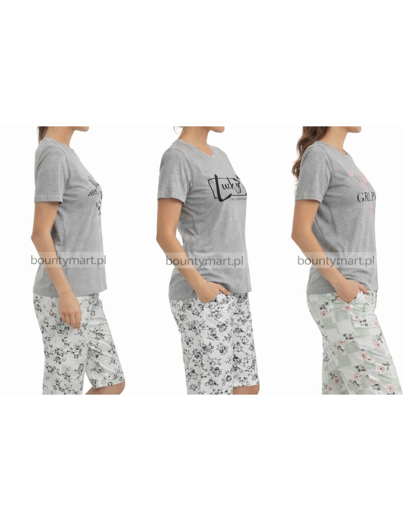 Piżama damska bawełniana 3/4 z nadrukiem L-3XL