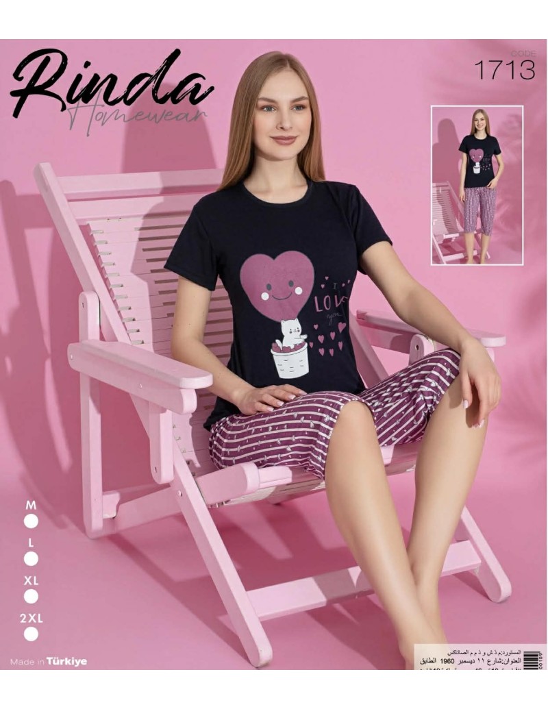 Piżama damska bawełniana 3/4 z nadrukiem M-2XL No.1713