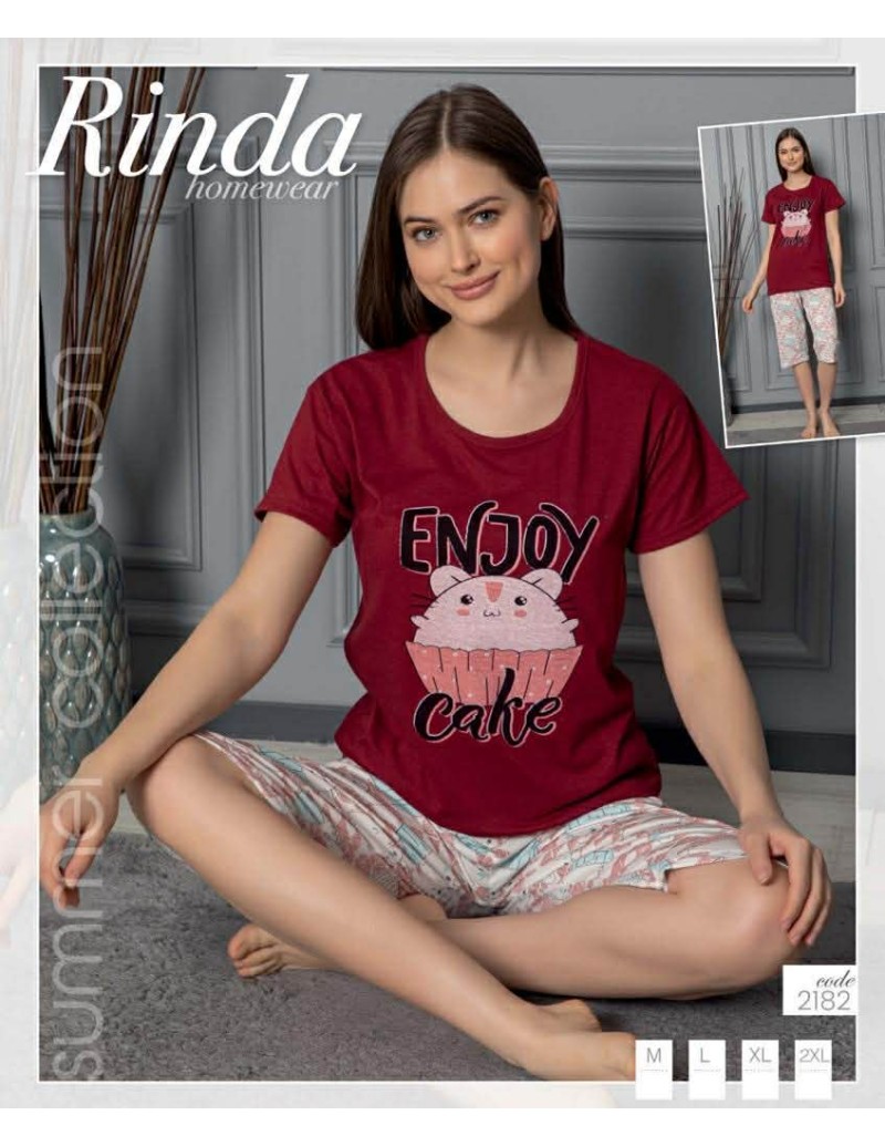 Piżama damska bawełniana 3/4 z nadrukiem M-2XL No.2182