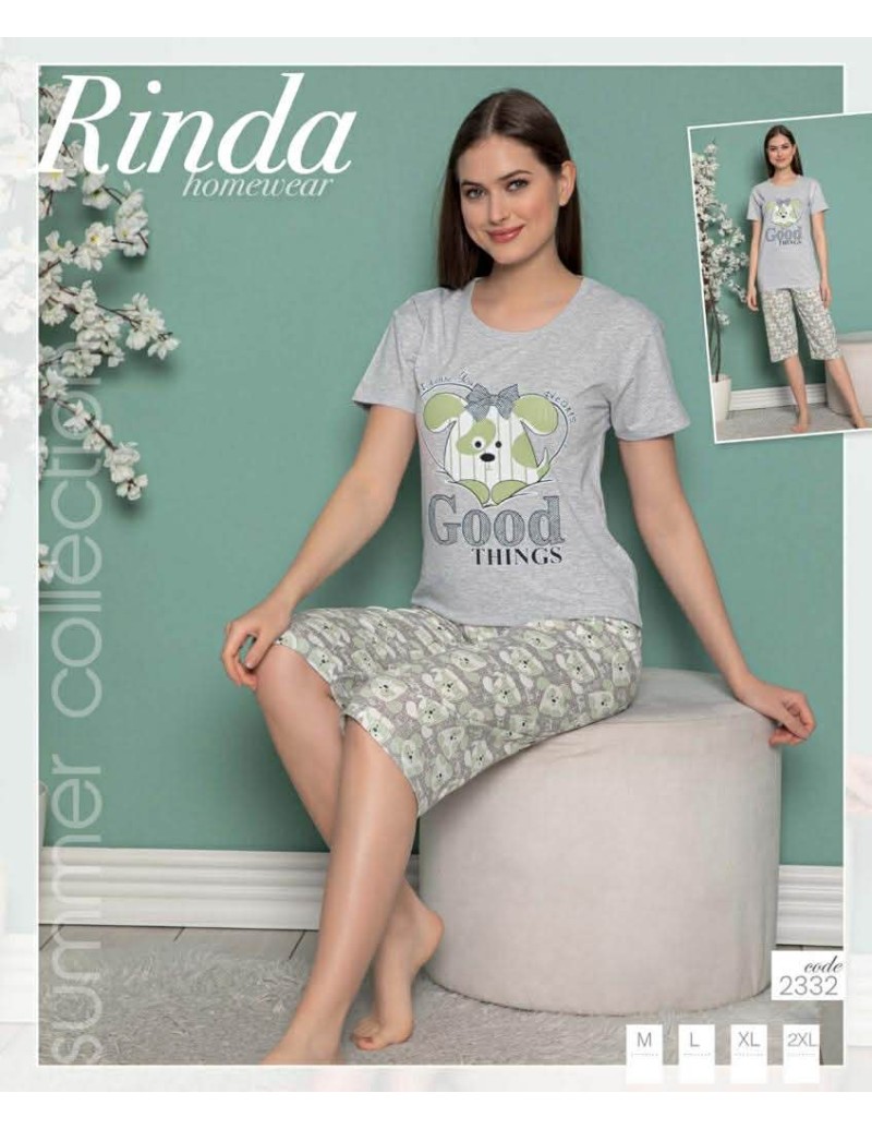 Piżama damska bawełniana 3/4 z nadrukiem M-2XL No.2332