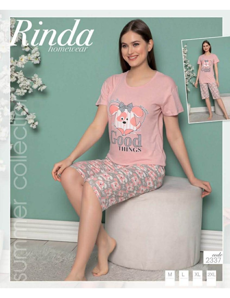 Piżama damska bawełniana 3/4 z nadrukiem M-2XL No.2337
