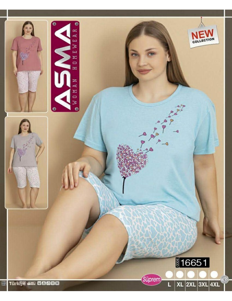 Piżama damska bawełniana 3/4 z nadrukiem DUŻY Rozmiar L-4XL No.16551